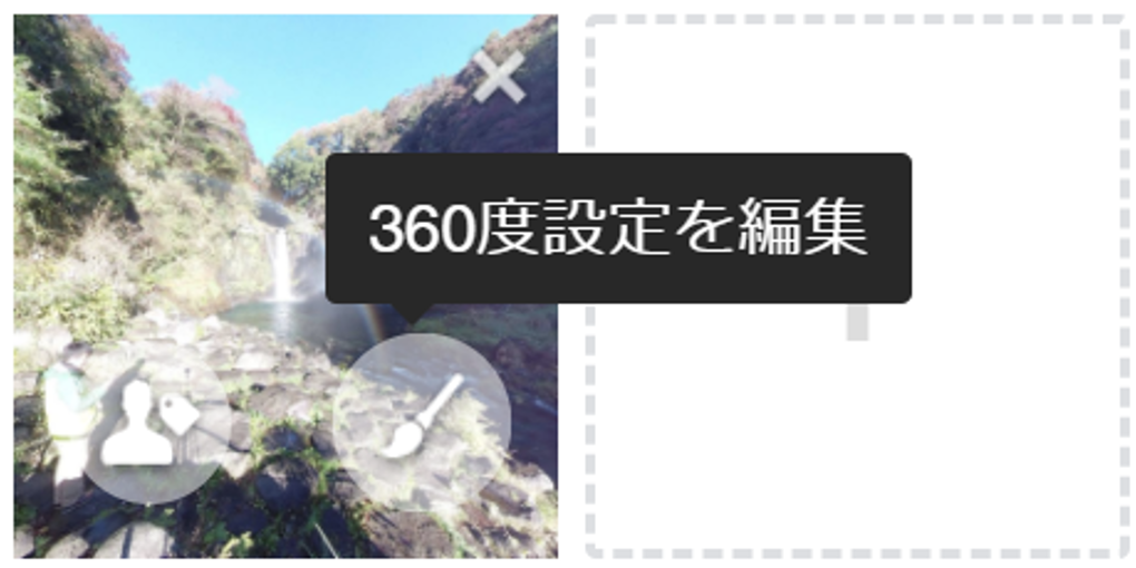 360度写真のサムネイルにマウスポインタを重ねると、2つのアイコンが表示されます。