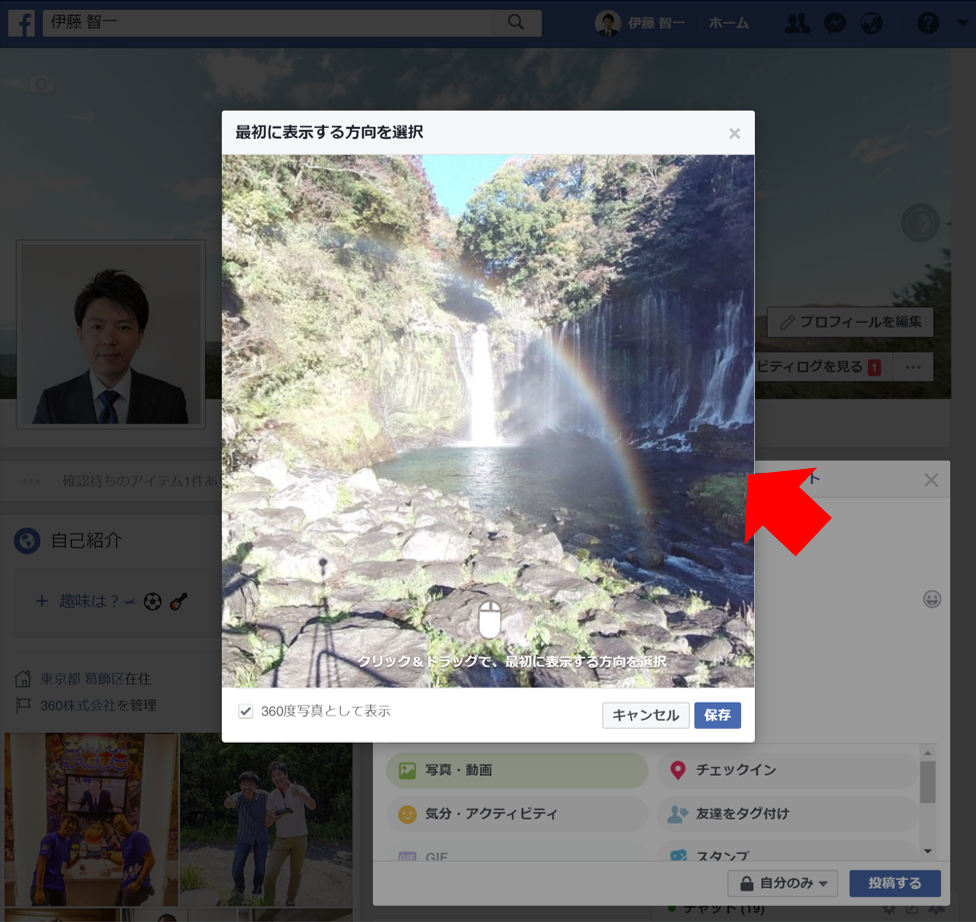 Facebookに360度写真を掲載する手順